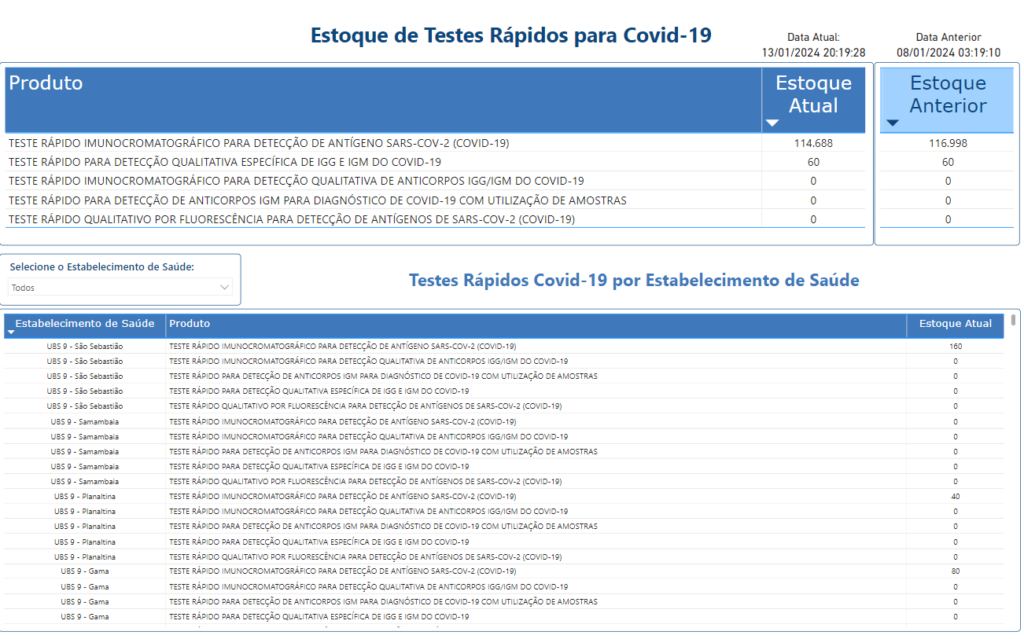 Painel Infosaúde – Estoque de Testes Rápidos Covid-19